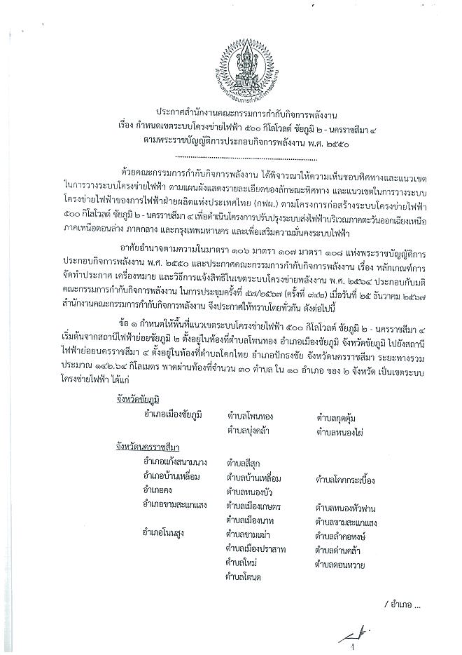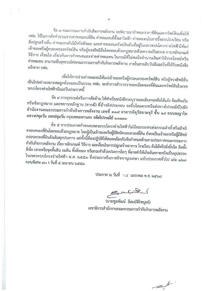 การเผยแพร่ข้อมูลการจัดกรรมสิทธิ์ที่ดินเพื่อก่อสร้างระบบโครงข่ายไฟฟ้า500กิโลโวลต์