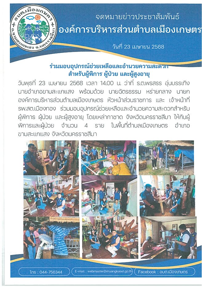 ร่วมมอบอุปกรณ์ช่วยเหลือและอำนวยความสะดวกสำหรับผู้พิการผู้ป่วยและผู้สูงอายุ