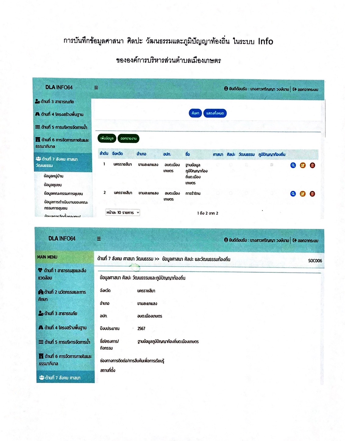 การบันทึกข้อมูลศาสนา ศิลปะ วัฒนธรรมและภูมิปํญญาท้องถิ่น ในระบบ Info
