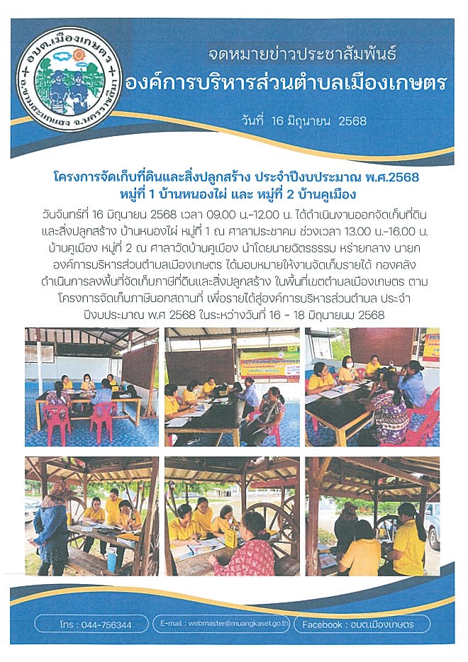 โครงการการจัดเก็บภาษีที่ดินและสิ่งปลูกสร้างนอกสถานที่ ม.1 และ ม.2 ปี 2568