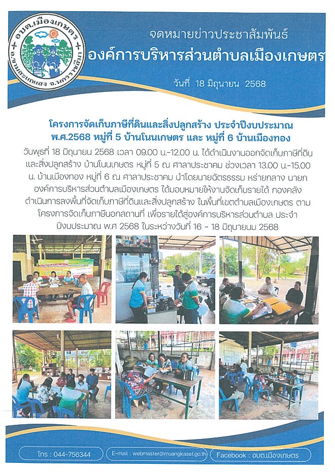 โครงการการจัดเก็บภาษีที่ดินและสิ่งปลูกสร้างนอกสถานที่ ม.5 และ ม.6 ปี 2568