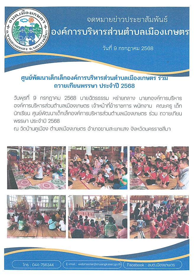 ศูนย์พัฒนาเด็กเล็กองค์การบริหารส่วนตำบลเมืองเกษตร ร่วม ถวายเทียนพรรษา ประจำปี 2568