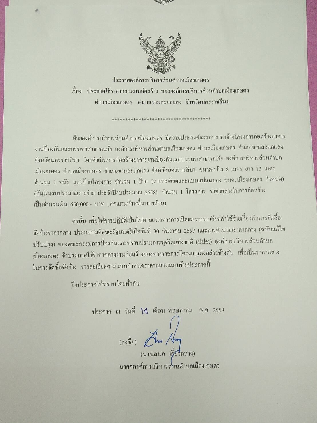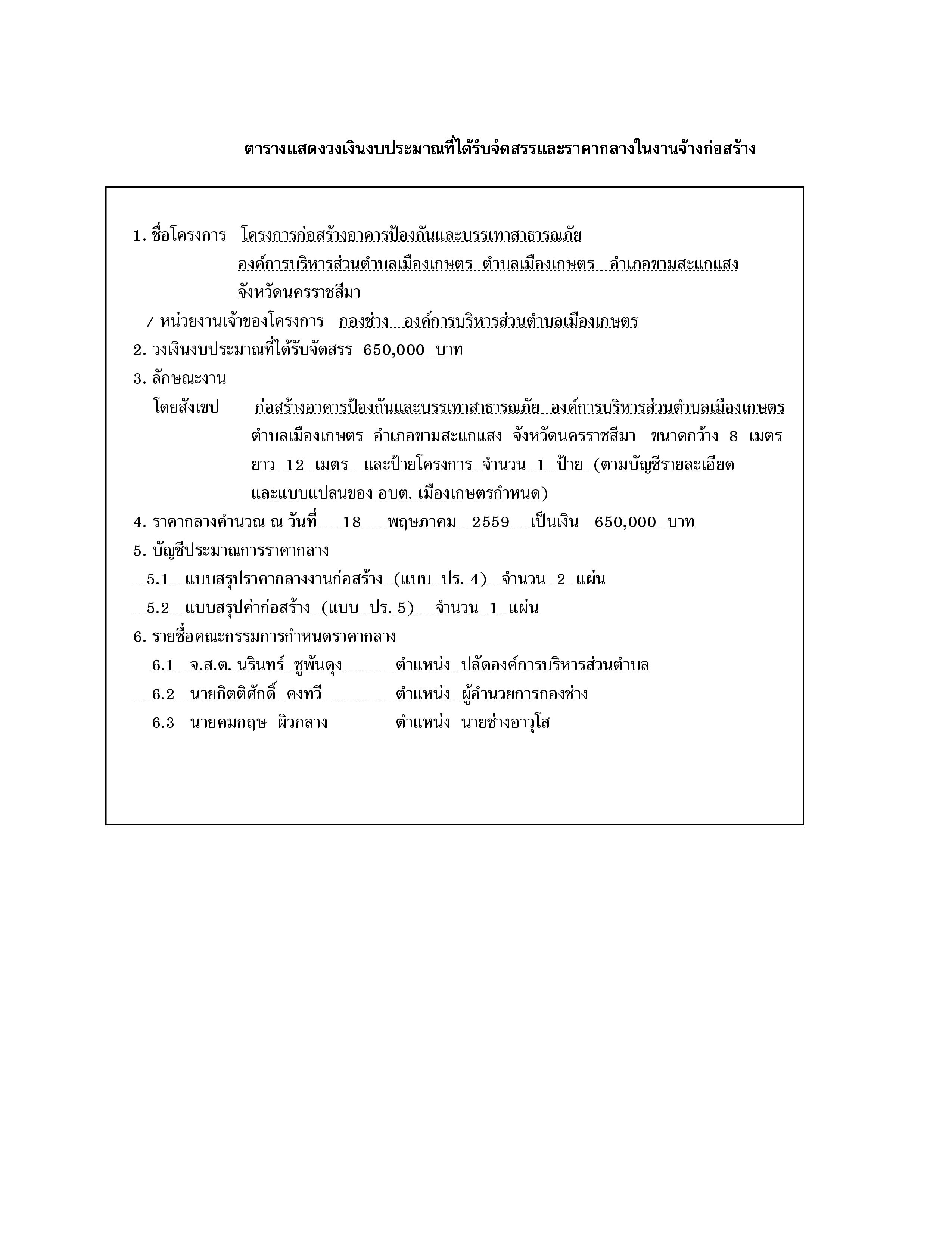 ประกาศใช้ราคากลางงานก่อสร้างโครงการก่อสร้างอาคารป้องกันและบรรเทาสาธารณภัย